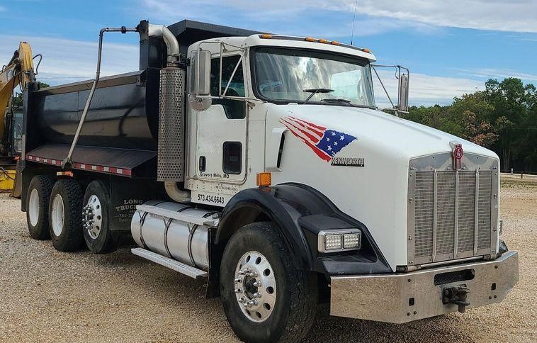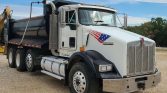 The 2007 Kenworth T800 dump truck has 640,222 miles and 23,150 hours. It is powered by a 14.9-liter Cummins ISX diesel engine with six cylinders and features a 13-speed manual transmission. The chassis includes triple axles with a pusher axle, spring over walking beam suspension, air brakes, and a PTO. The interior is equipped with air conditioning, heat, and cruise control.