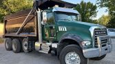 Features: Dump bed (Beau-Roc), 17’6″ long x 96″ wide, side height 54″, side board height 10″, barrel bed type, roll tarp, single ram, air-operated end gate