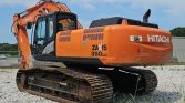 The 2015 Hitachi ZX350LC-5N excavator offers powerful performance and versatility for heavy-duty construction work. With 5,955 hours on the meter, it is powered by a reliable six-cylinder Isuzu diesel engine paired with a hydrostatic transmission featuring two-speed travel for smooth and efficient operation. The enclosed cab provides air conditioning and heat for operator comfort. Equipped with auxiliary hydraulics and counterweights, the machine features a standard boom with a 10-foot 6-inch stick and a hydraulic quick coupler for easy attachment changes. It rides on 32-inch tracks with triple grouser pads, ensuring excellent stability and traction on varied job sites.