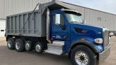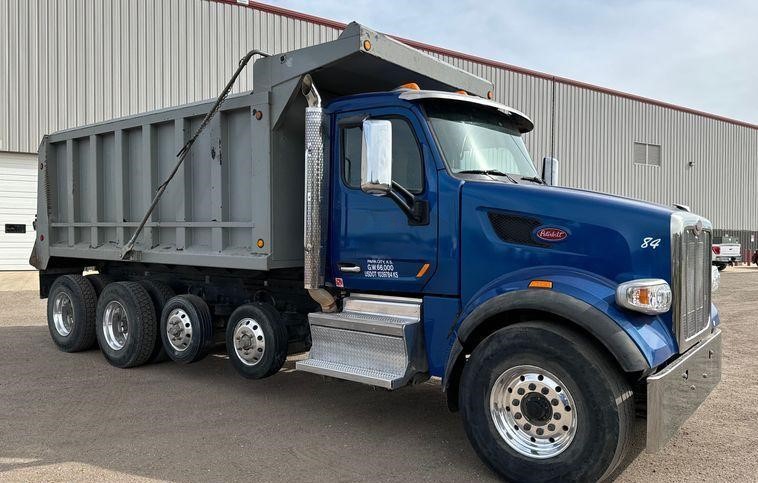 This 2018 Peterbilt 567 dump truck has 252,567 miles and 10,388 hours on the meter. It is powered by a 12.9L Paccar MX13 6-cylinder diesel engine with an Allison automatic transmission. The truck features a 4-axle chassis with a steerable pusher axle, inter-axle differential lock, air suspension, air brakes, and PTO. The GVWR is 72,000 lbs. The interior includes A/C, heat, heated mirrors, power windows, and cruise control. The steel Reynolds 631401696605G dump bed is 16' long by…